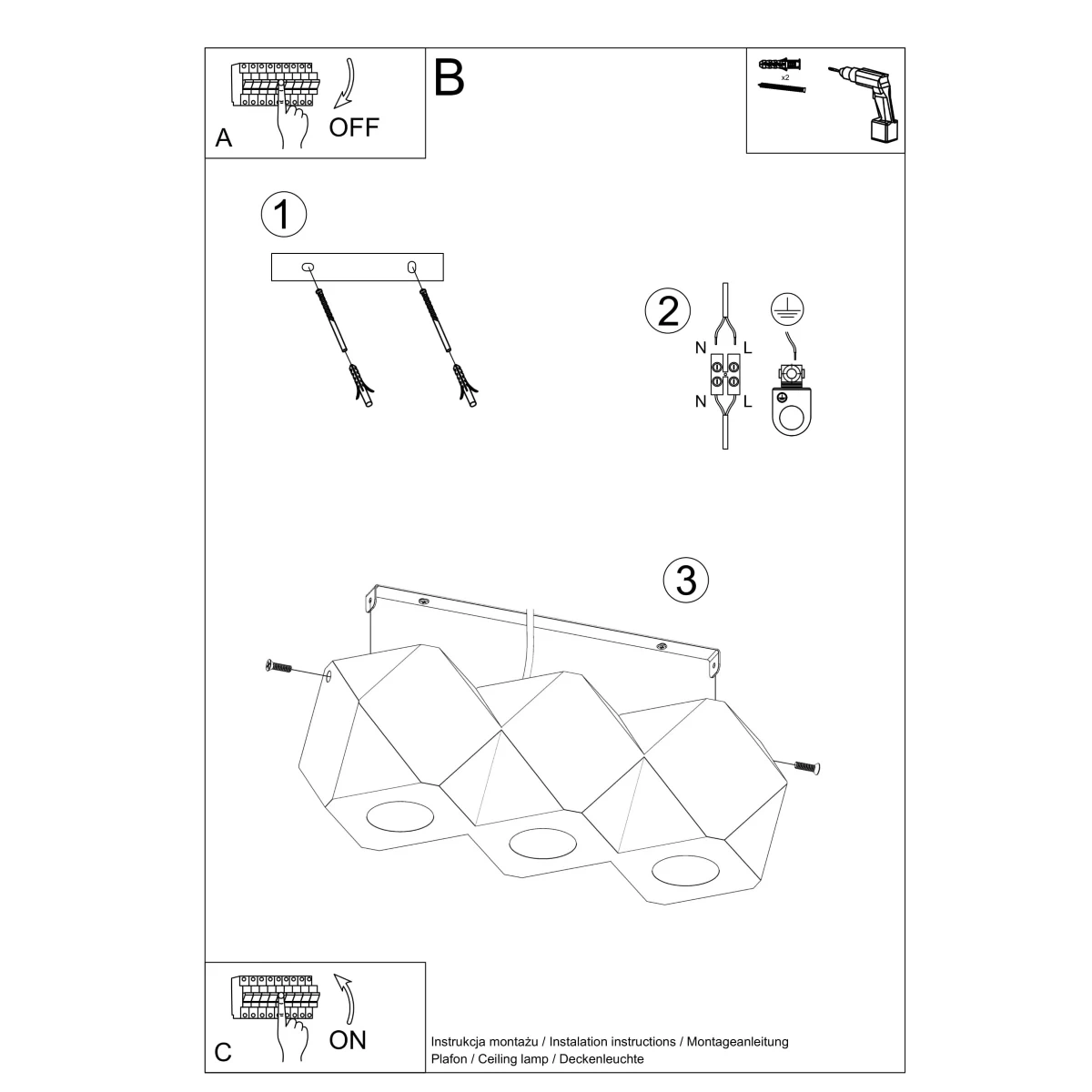 Ceiling lamp WOODY 3 natural wood